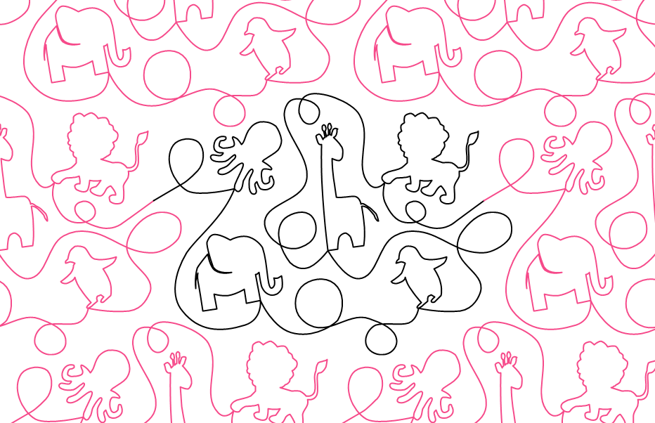 This Loopy Zoo Animals Longarm Quilting Digital Pantograph is a simple continuous line that makes up curved lines looping into silhouettes of different animals. Great addition for any quilt you wanted to add any animal element to.